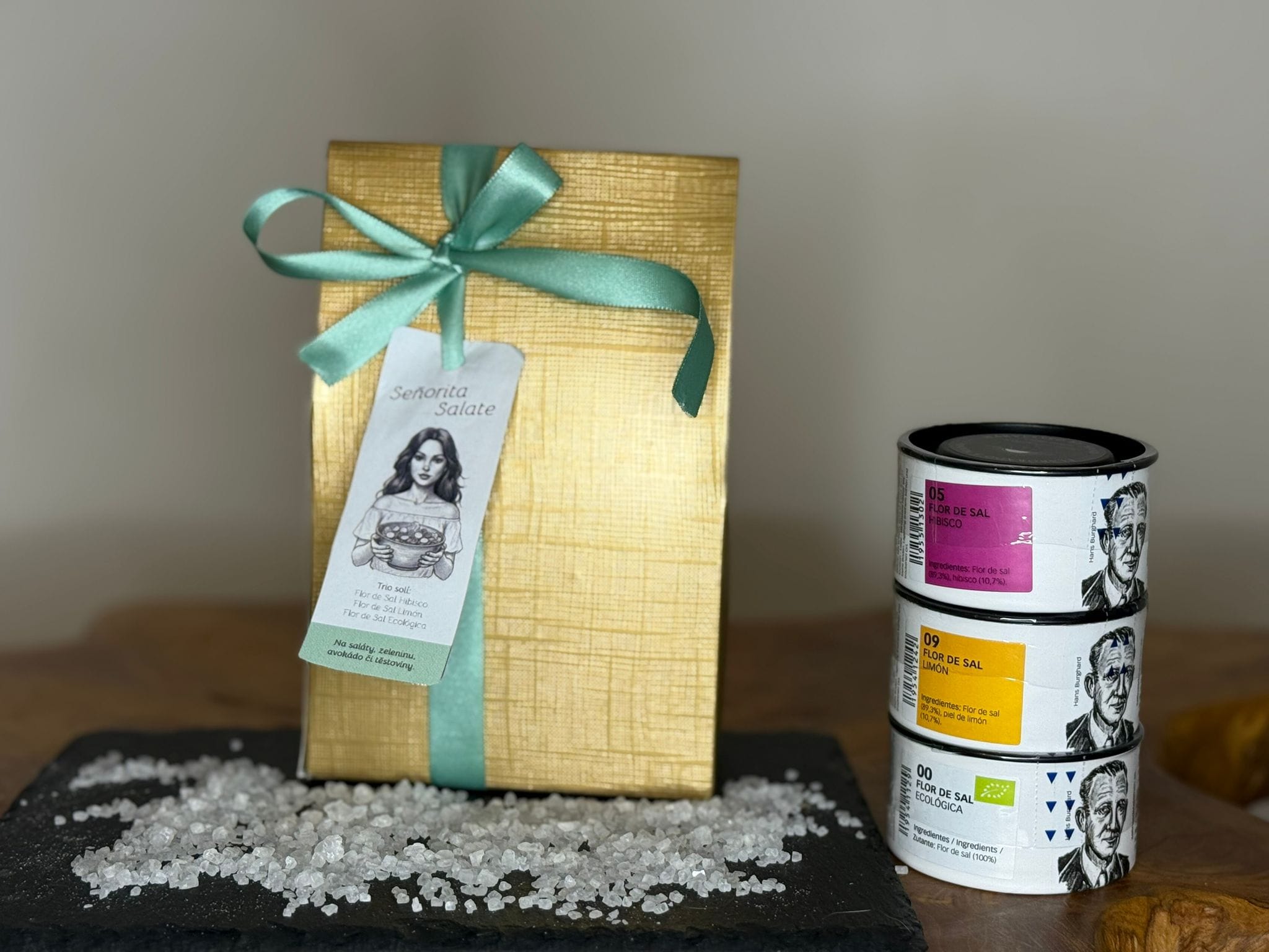 Přinášíme sadu speciálně vybraného tria Flor de Sal — ručně sbíraného solného květu — pro dokonalé dochucení vašich fit, lehkých a svěžích pokrmů.